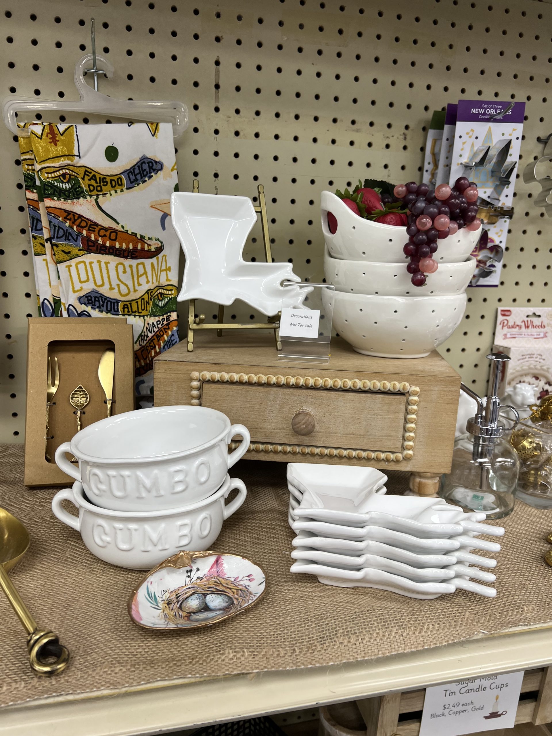 Home Decor & Kitchen — Charming Louisiana-themed pieces, ceramic servingware (including gumbo bowls!), decorative bowls, and cozy accents.