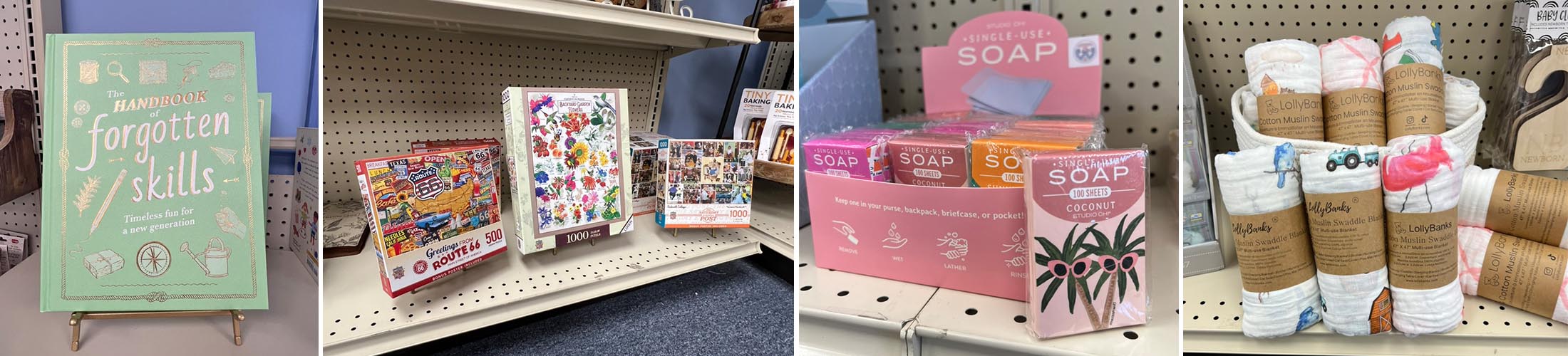 And More — Candles, books, novelty items, and seasonal surprises that change regularly.